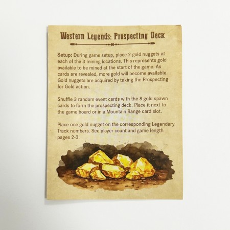 The Western Legends: Prospecting Deck adds more variety to your wild west adventures! Determining when and where gold nuggets become available to be mined. It also introduces brand new mining events! Making each game feel fresh and unique.