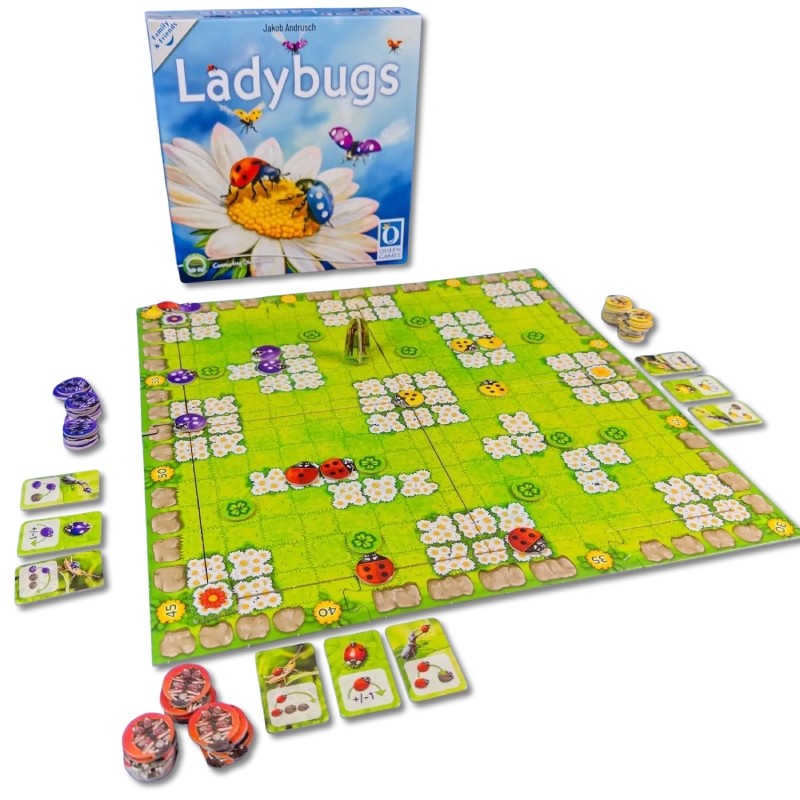 Scoring: Points are awarded at the end of the game based on who dominates each flowerbed. The most influential ladybug team wins!