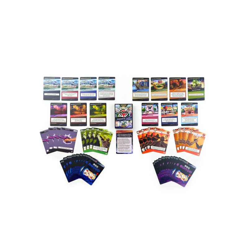 Visit 12 locations around Fairview City, the center of Yomi 2 competition. Each location has its own rules that change the game. This set also includes “hard tag” cards that allow you to play in 2-on-2 tag-team mode.
